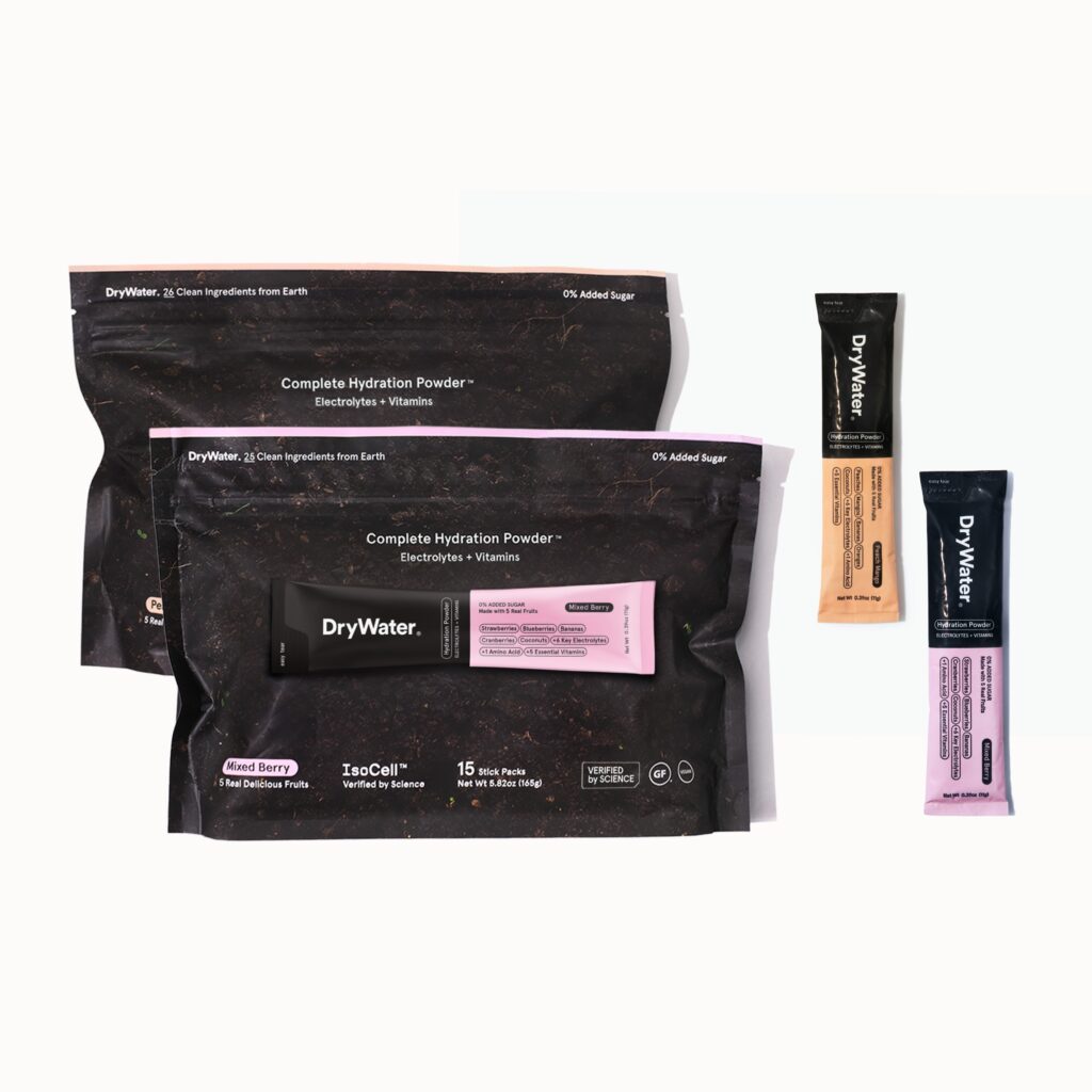 Made from real dehydrated fruit, DryWater is a delicious way to hydrate, with electrolytes and vitamins—no added sugar, dairy, gluten, or artificial junk. Includes a 30-pack Flavor Bundle. Raspberry Lemon is our go-to flavor.