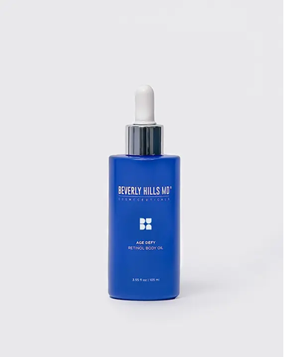 Beverly Hills MD Age Defy Body Retinol Oil™ is a luxurious body treatment designed to help your skin look smoother, firmer, and more even from head to toe. It targets areas like the chest, neck, arms, thighs, and hands—helping to reduce the appearance of fine lines, crepey skin, and uneven tone. The formula features micro-encapsulated retinol that’s gentle enough for nightly use, without the usual dryness. If you have oily skin, it can help blur the look of pores, while nourishing botanical oils leave dry skin feeling soft and hydrated. As with any retinol product, it’s best to patch-test first to make sure it suits your skin’s unique needs.